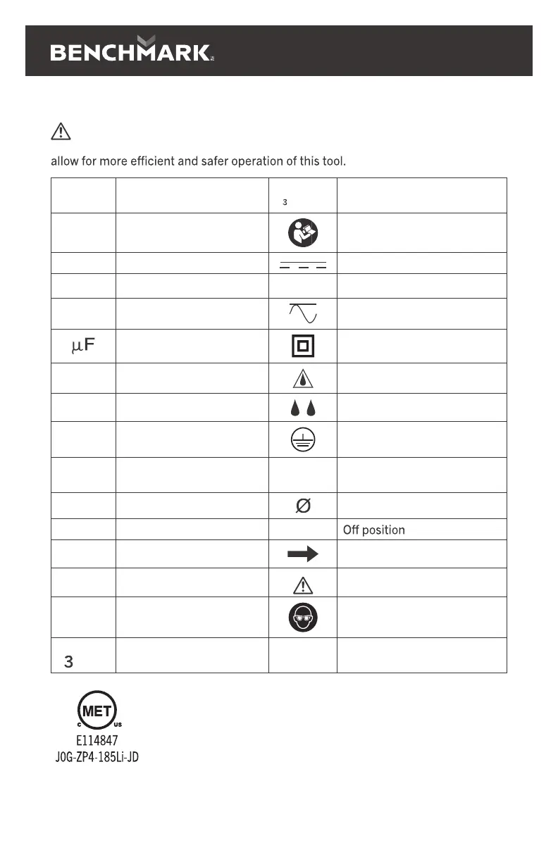 This symbol designates that this tool os listed with U.S. repuirements by