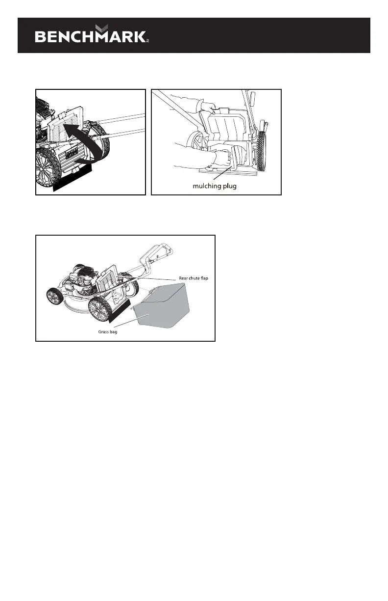 2. Remove the mulching plug when you set your lawn mower for rear bagging.