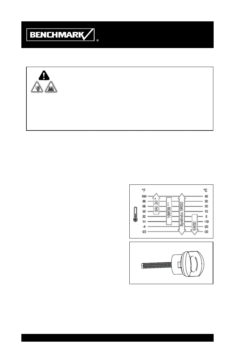 Outdoor temperatures determine the proper oil viscosity for the engine. Use the chart