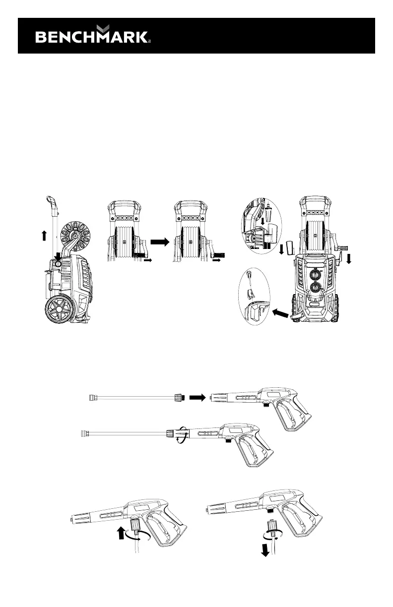 4. Insert the lance into the gun. Push and turn the adjustable nozzle clockwise onto