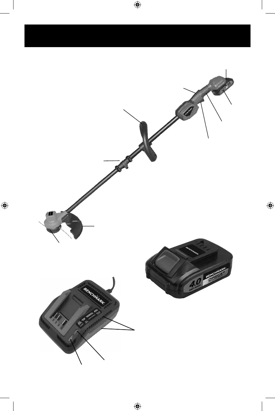 Benchmark 5073-039 - Know Your Grass Trimmer; Trimmer Component Identification; Battery and Charger Component Identification
