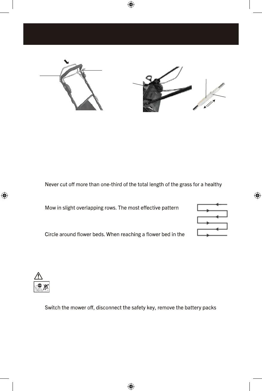 2. Do not cut wet grass because it tends to stick to the underbody of the mower,
