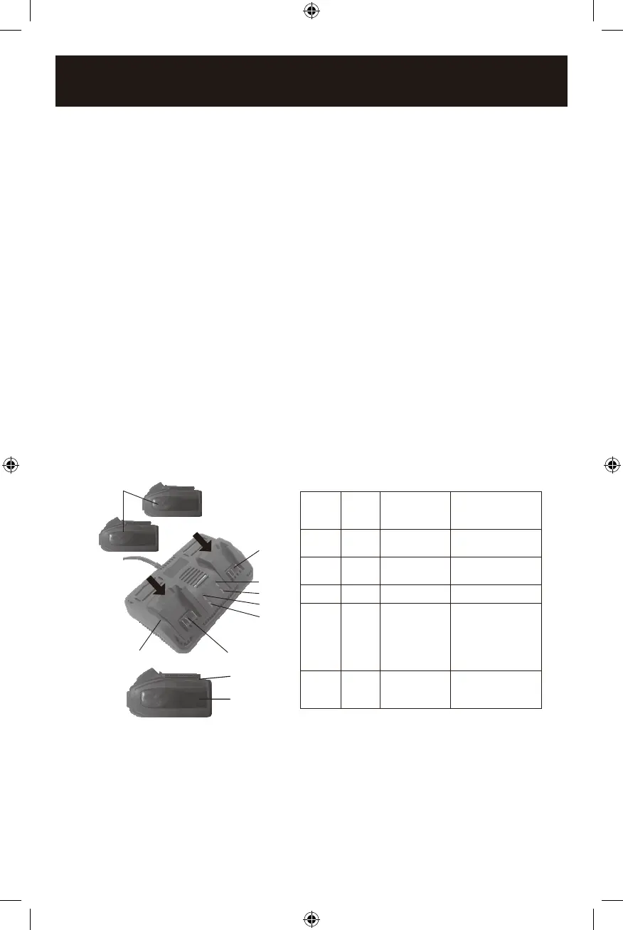 tabs on the charger (4) until the battery latch “clicks” into place.
