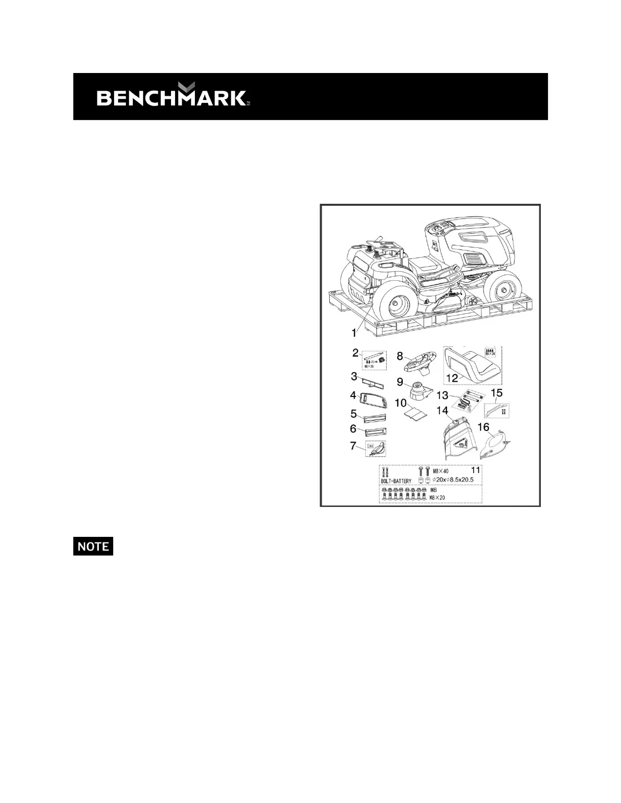 and do not damage the cutting deck when taking the machine off the pallet.