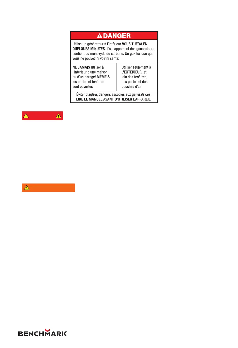 Ne faites jamais marcher le générateur dans un espace clos afin d’éviter