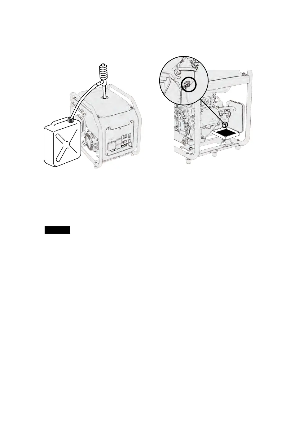Drain the generator of fuel and oil before being transported on rough