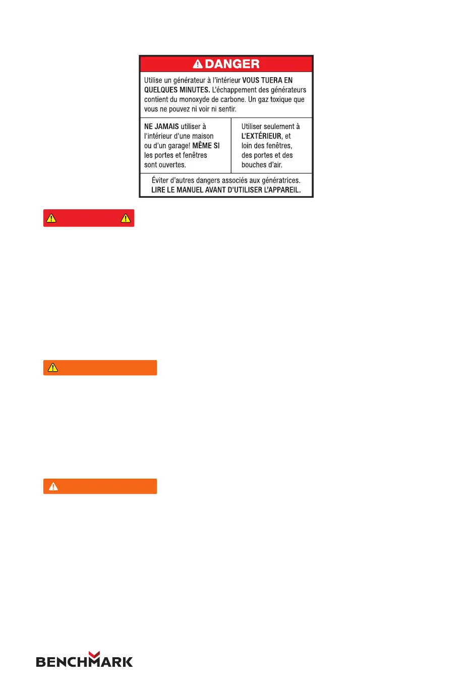 L’échappement du générateur contient du monoxyde de carbone.