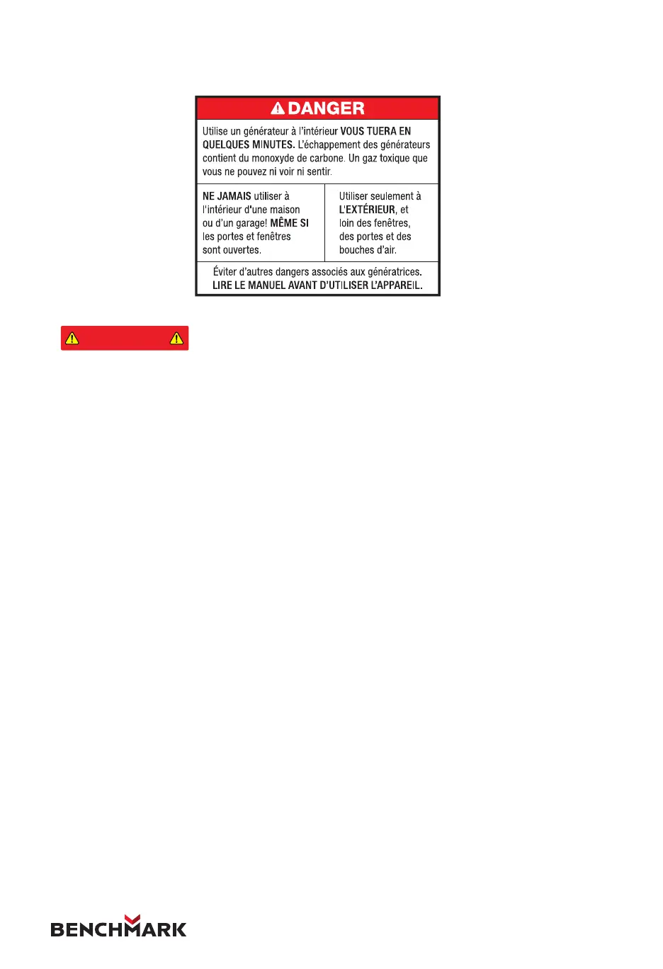 DANGER TOXIQUE. Faire fonctionner un moteur dégage de
