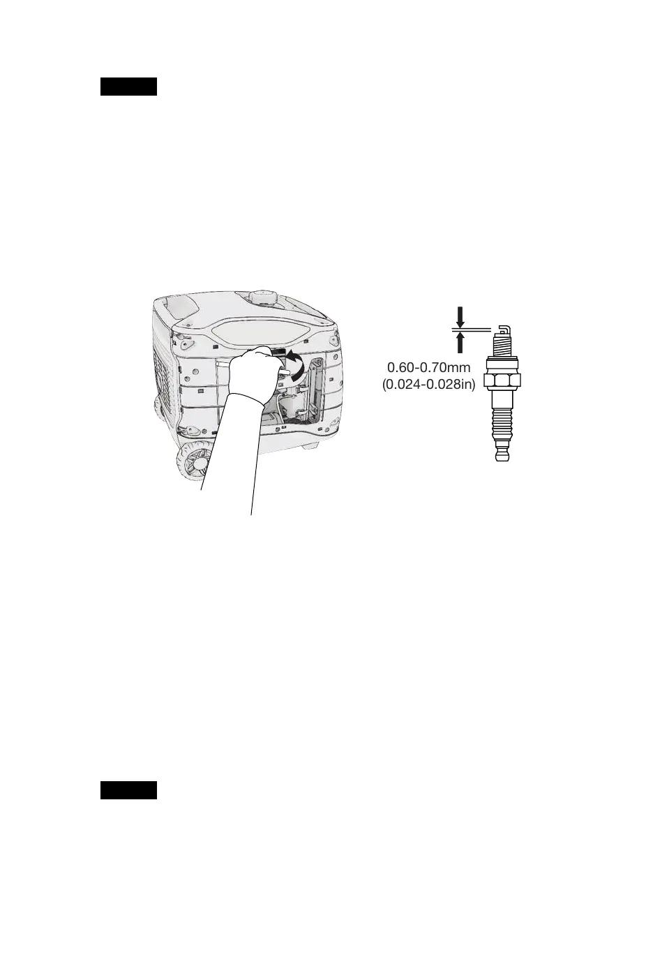 0.7mm (0.024- 0.028in). Adjust the gap by carefully bending the electrode.