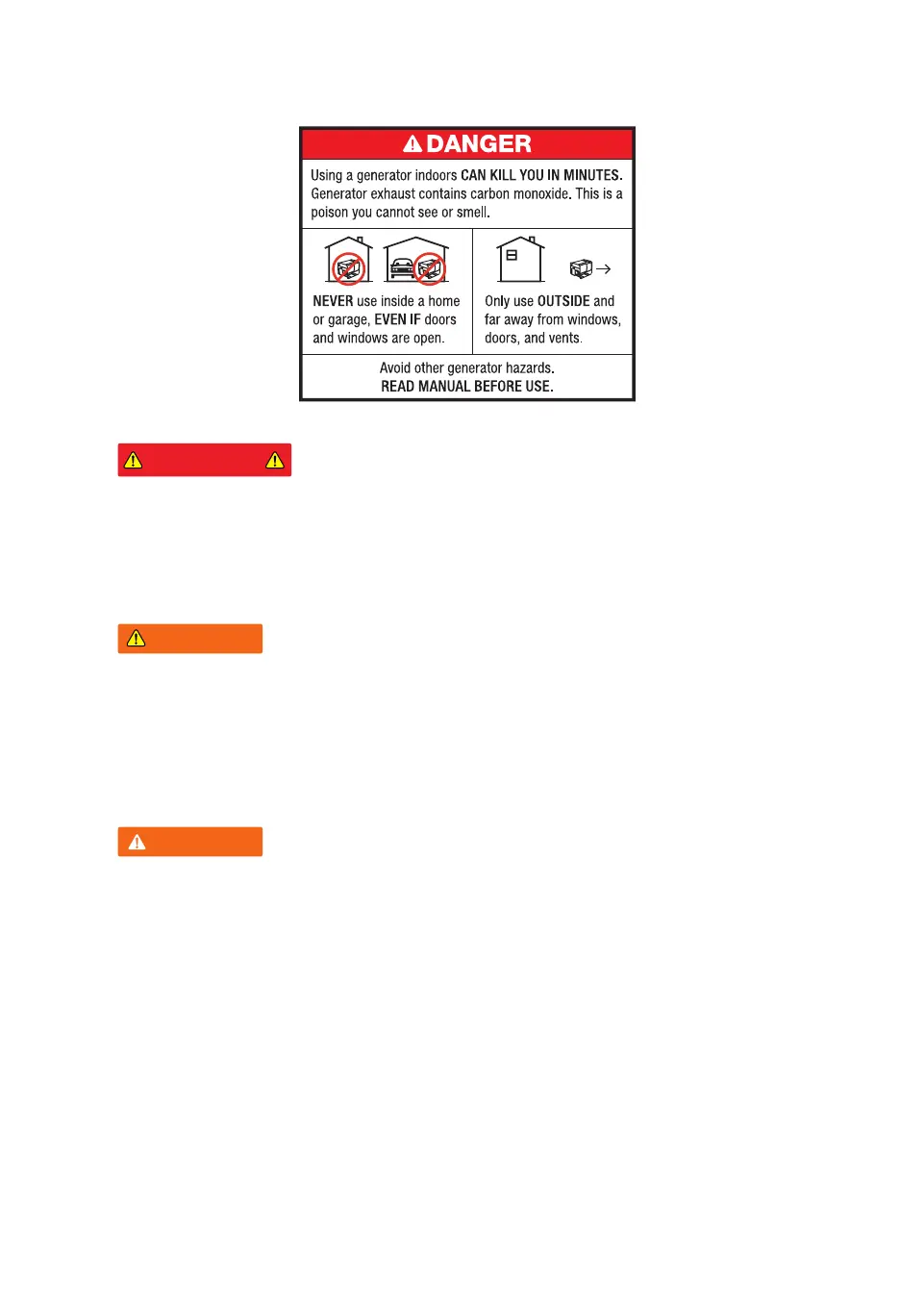 Never run the generator in an enclosed area to avoid harm from exhaust