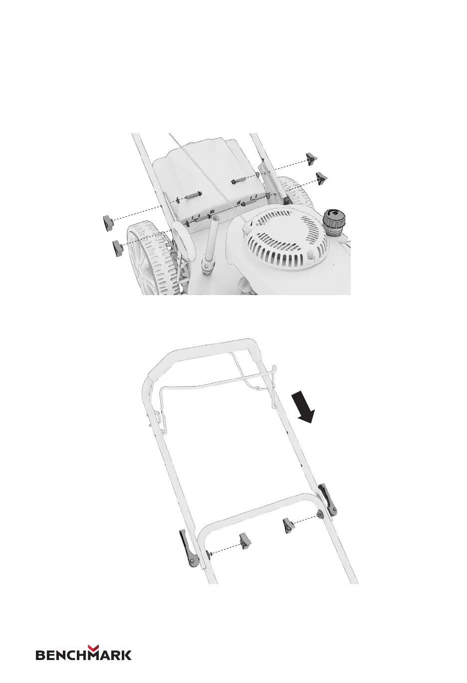 1. Fasten the lower handle to the device by using two bolts and two small