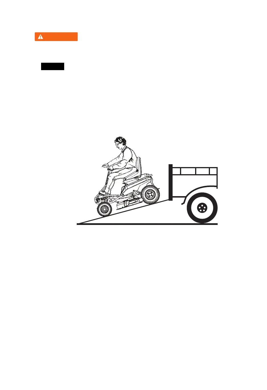 wheels going off the side of the ramp. Slowly drive the mower onto the