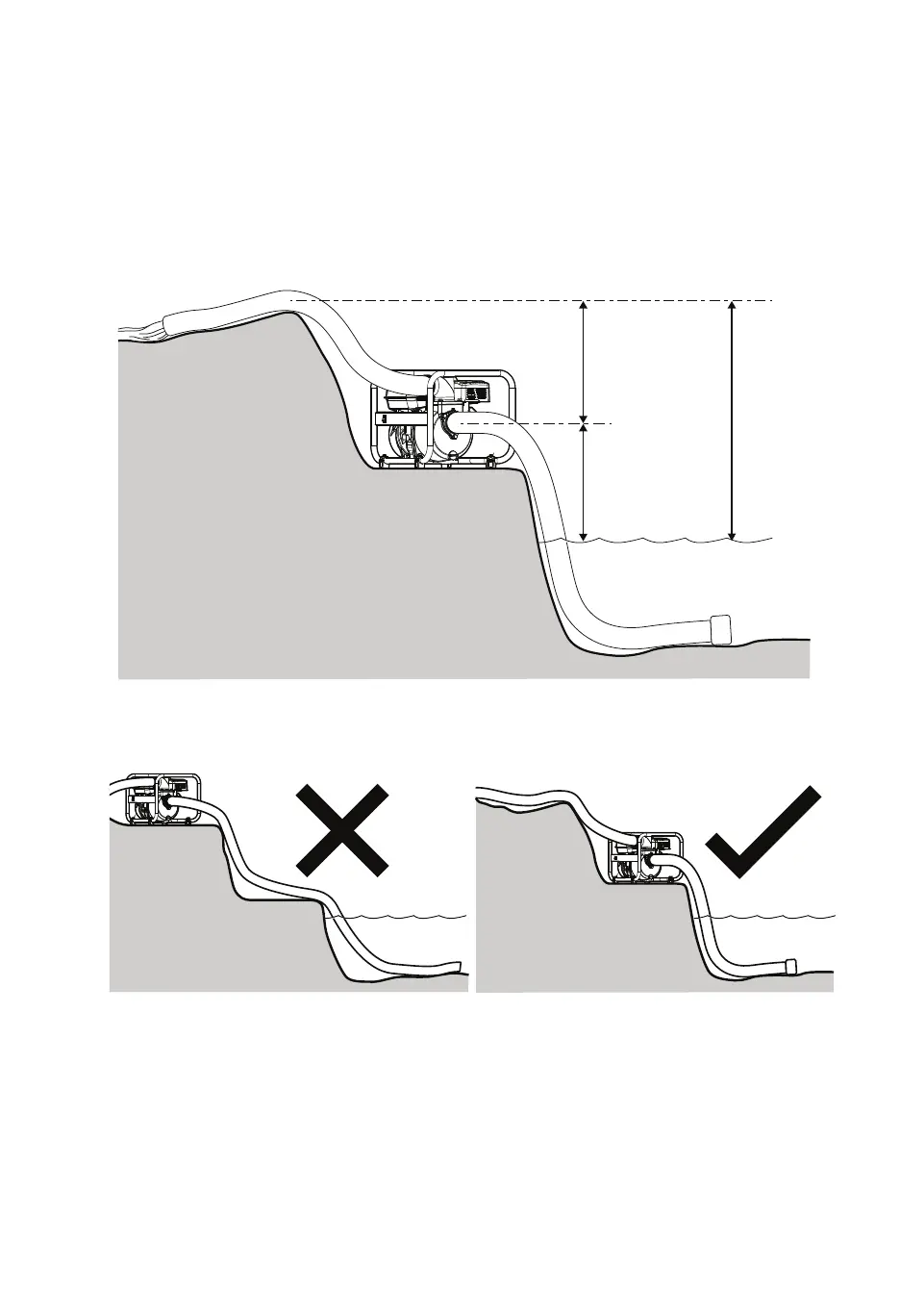 côté aspiratoire, mesuré par rapport au niveau d’eau dans le creux. La tête de