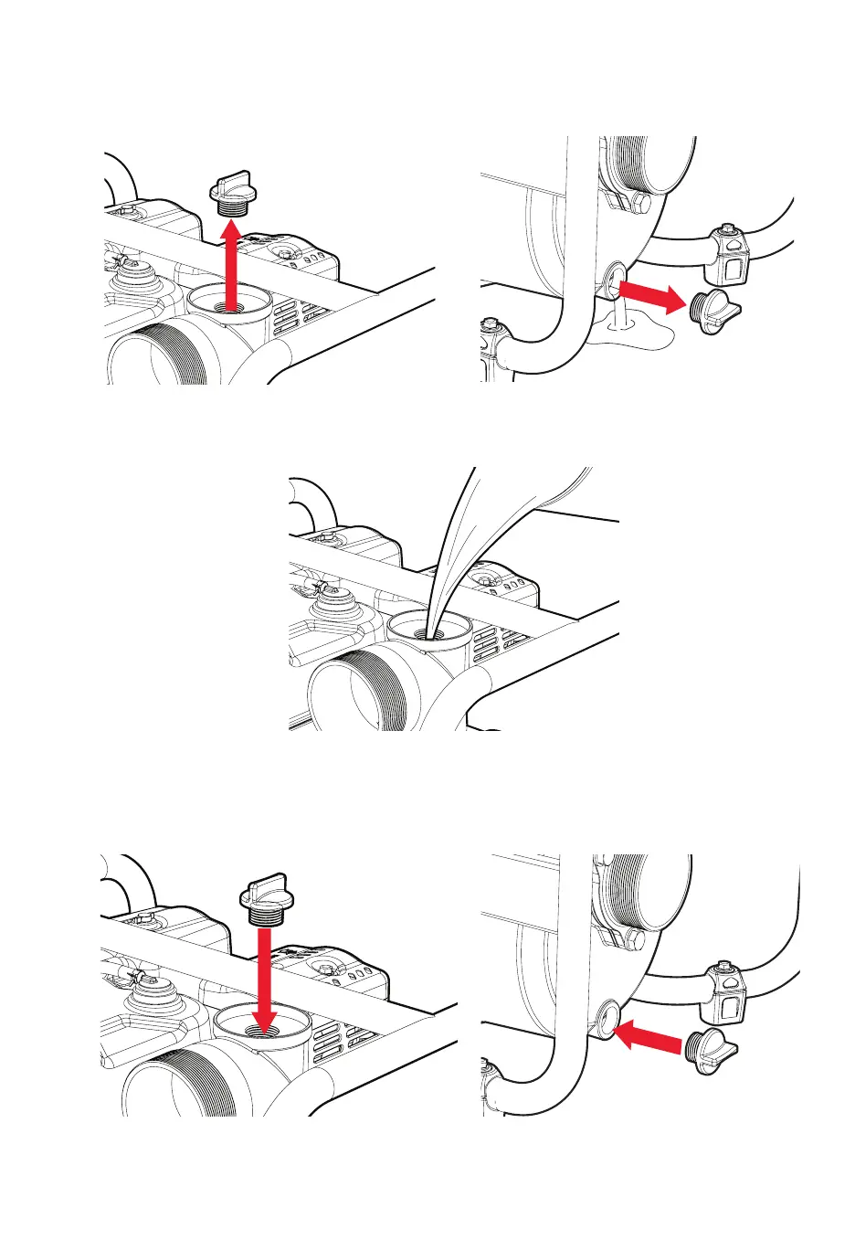 5. Retirez le bouchon d’essence, et ajoutez de l’eau fraiche et propre à la