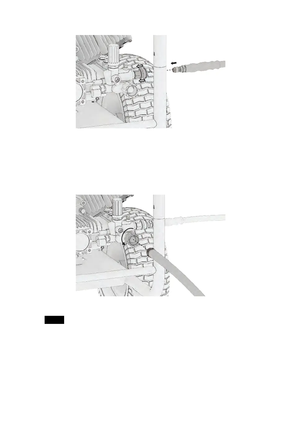 1. Attach the end of the high pressure hose to the high pressure outlet on the