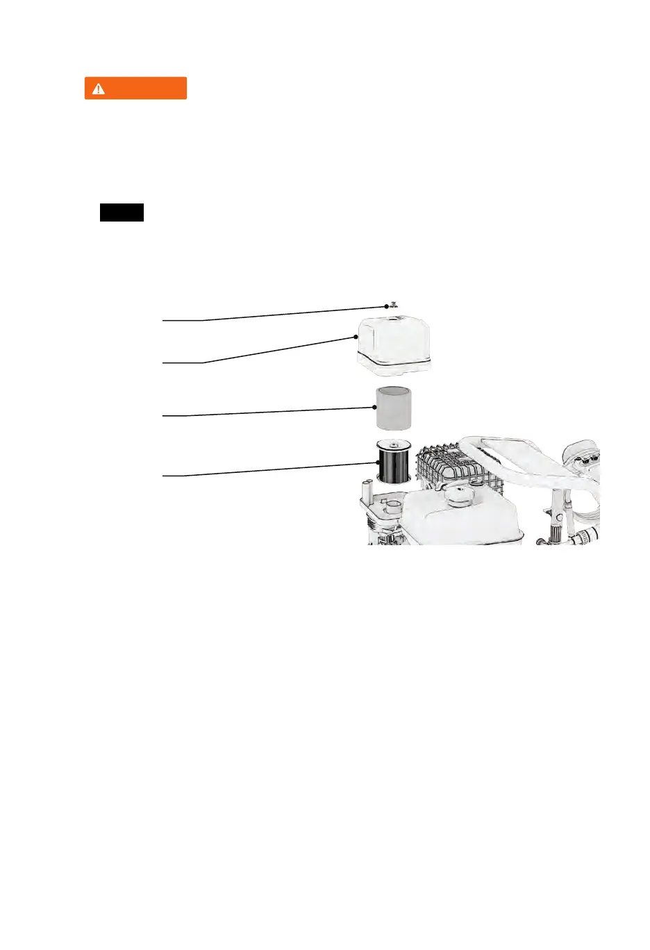Never run the pressure washer without an air filter, doing so will quickly