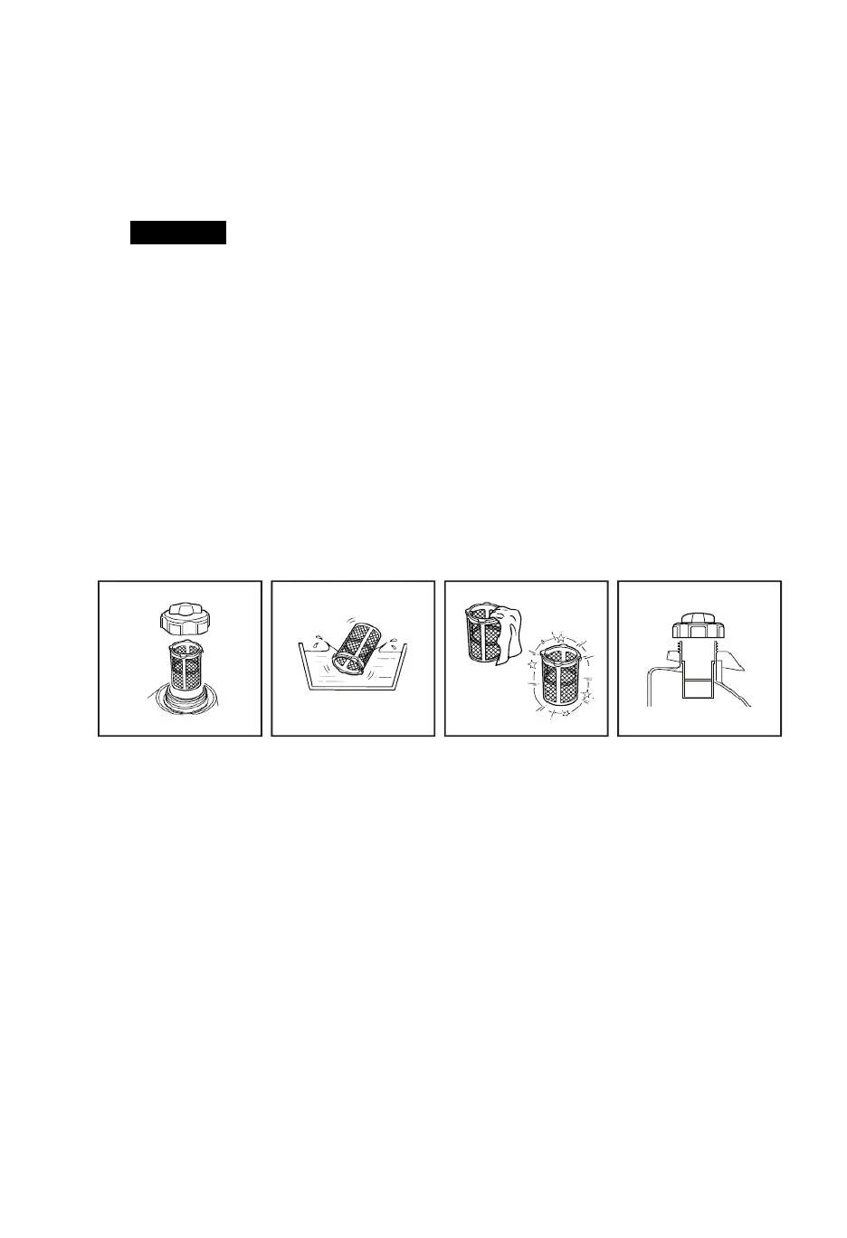 1. Retirer le bouchon du réservoir de carburant et le filtre.