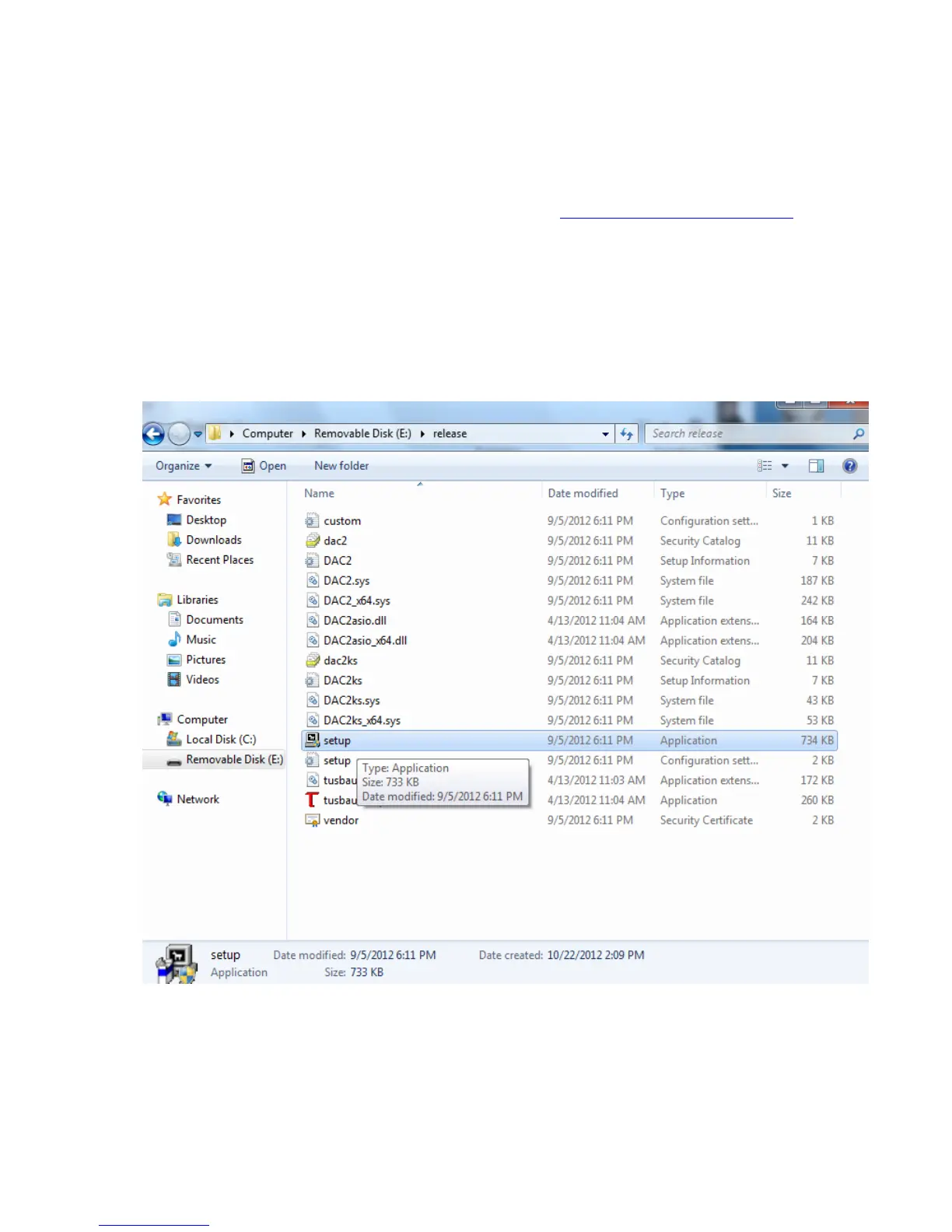 1. In the DAC2 Driver folder, double click “setup.exe.”