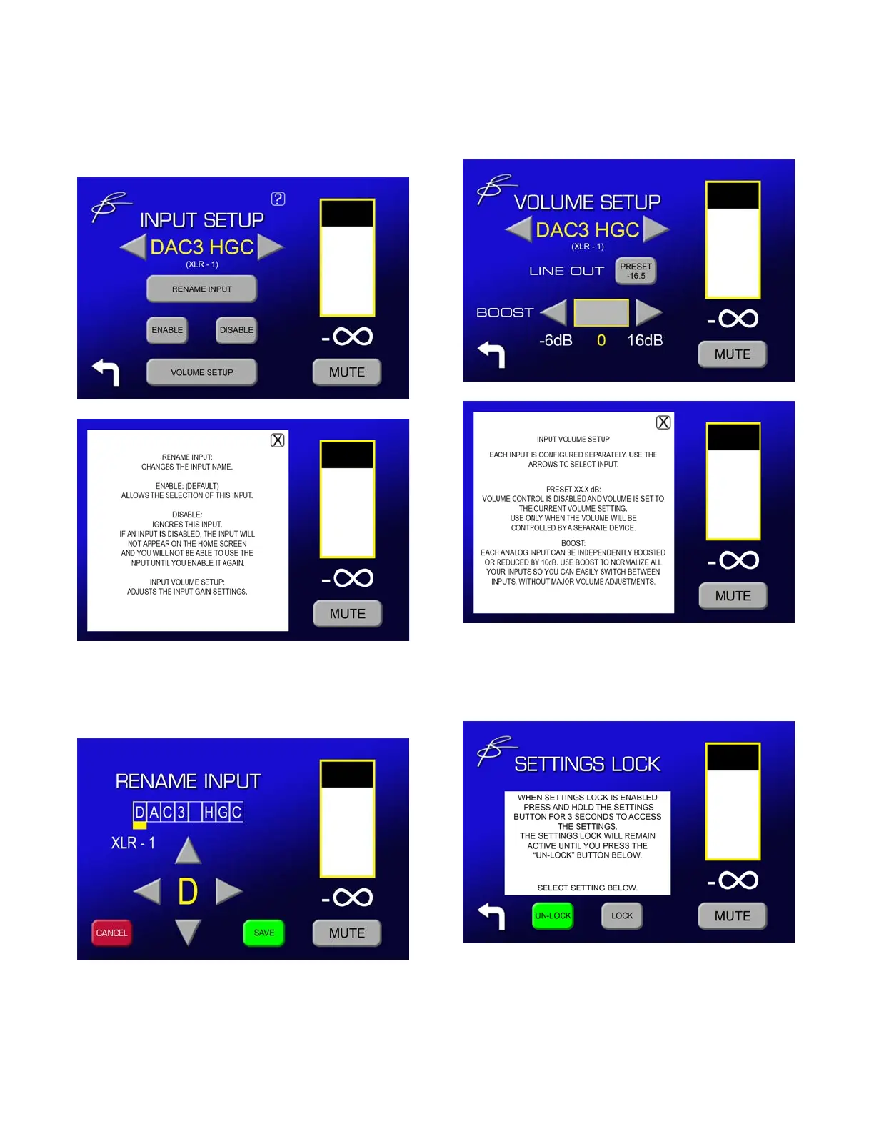 Benchmark LA4 - Input Setup; Input Management; Input Volume Setup; Settings Lock