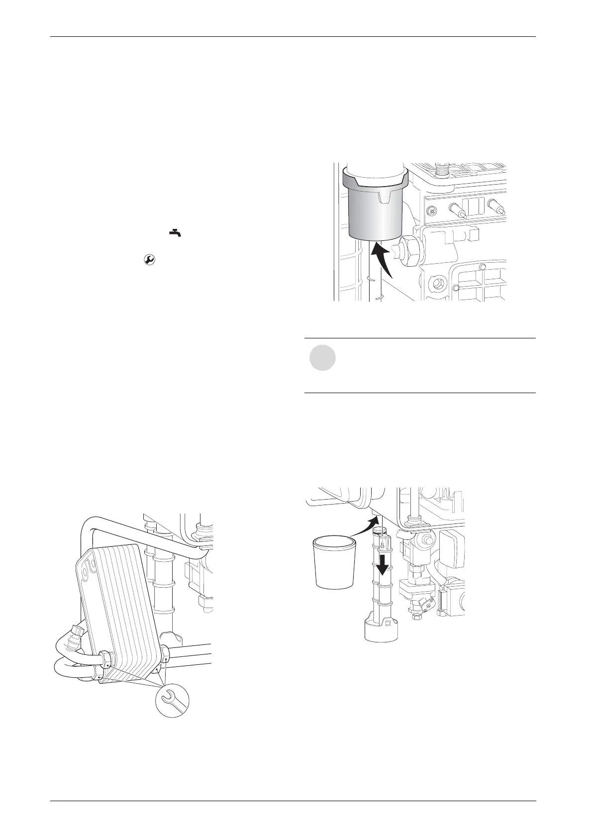 B Unscrew condensation trap and place suitable con-