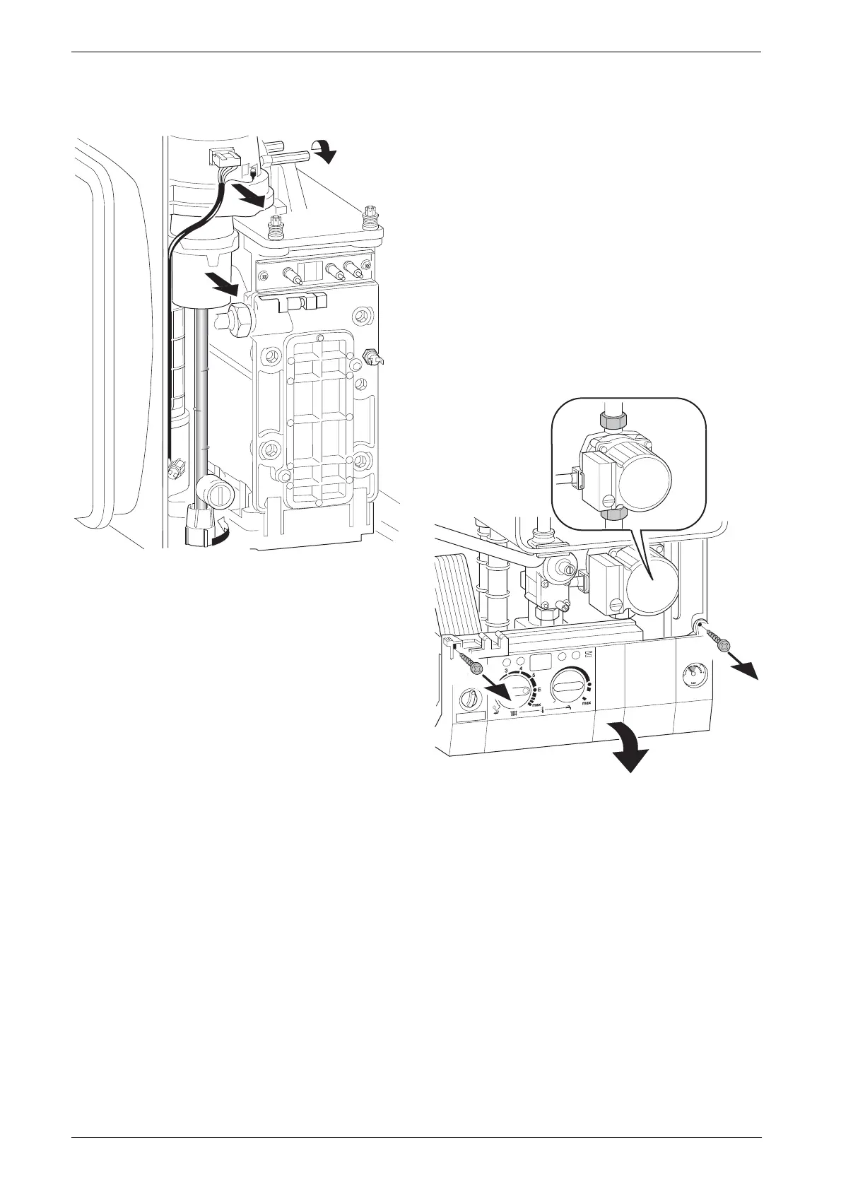 B Remove two switchbox fixing screws (1.). Refer to