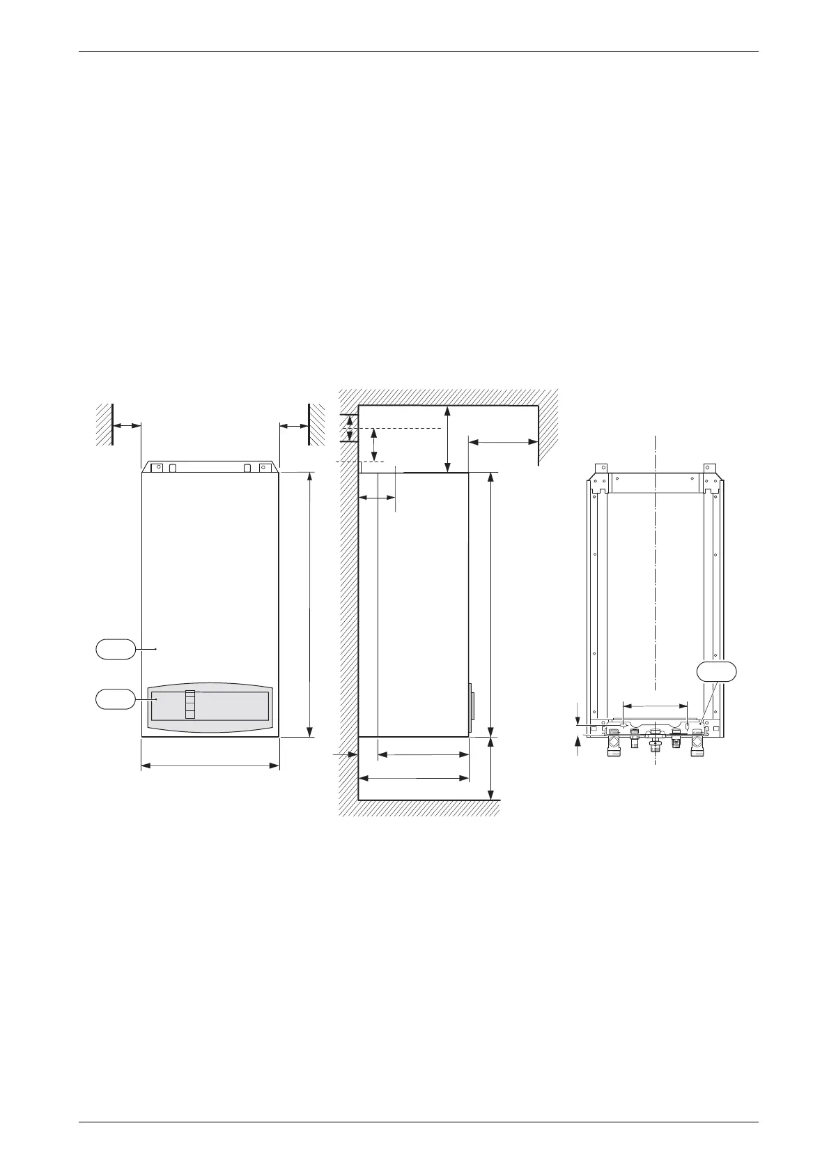 Note: Horizontal flue only: dimension X may need to increase due