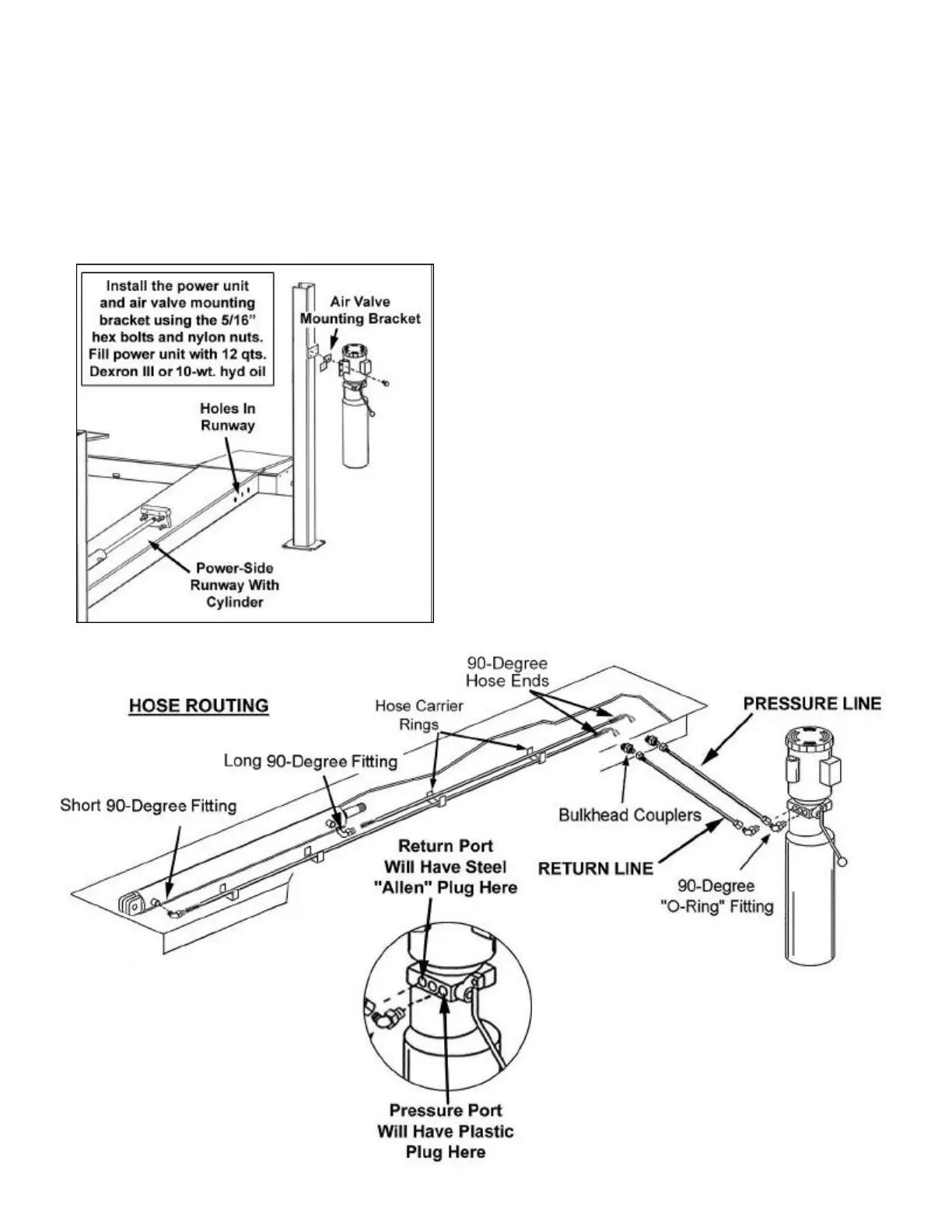 the underside of the runway. MAKE SURE HOSES