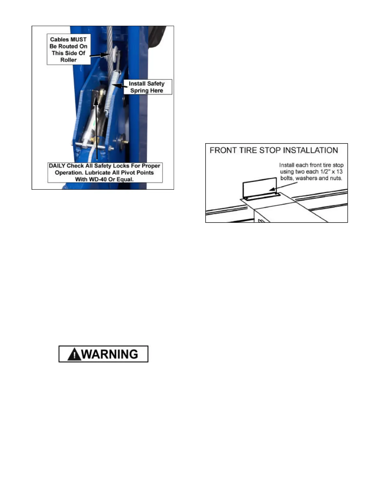 4. Install the front tire stops. ( See Fig. 15 )