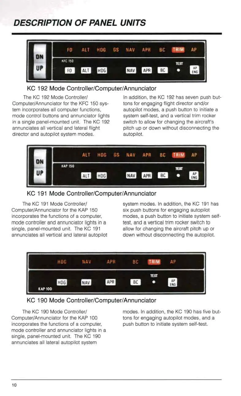 Bendix/King KAS 297B - Panel Unit Descriptions; Mode Controllers and Annunciators