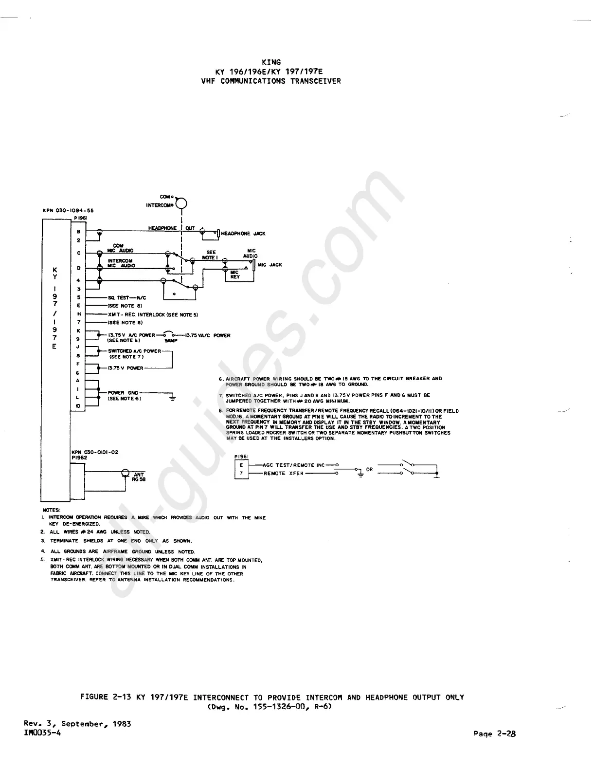 Bendix/King KY 196 - KY 197;197 E Interconnect to Provide Intercom and Headphone Output