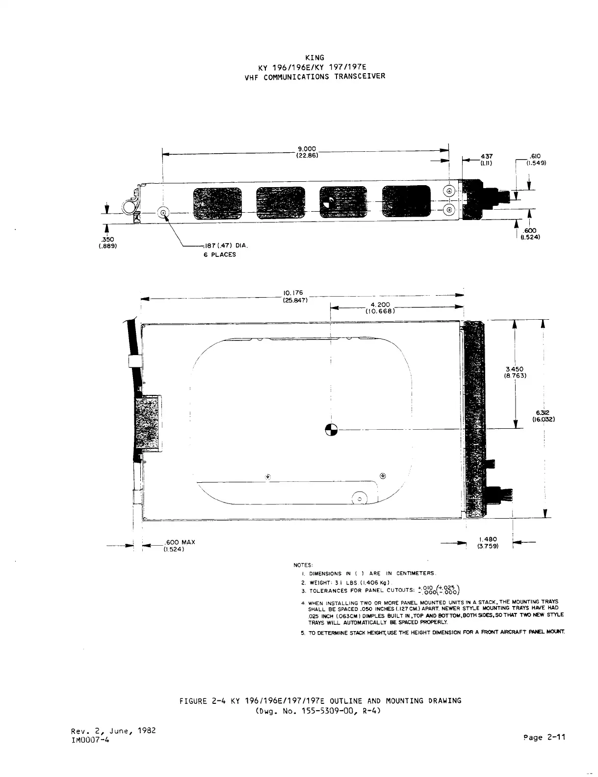 FIGURE 2-4 KY 196/196E/197/197E OUTLINE AND MOUNTING DRAWING