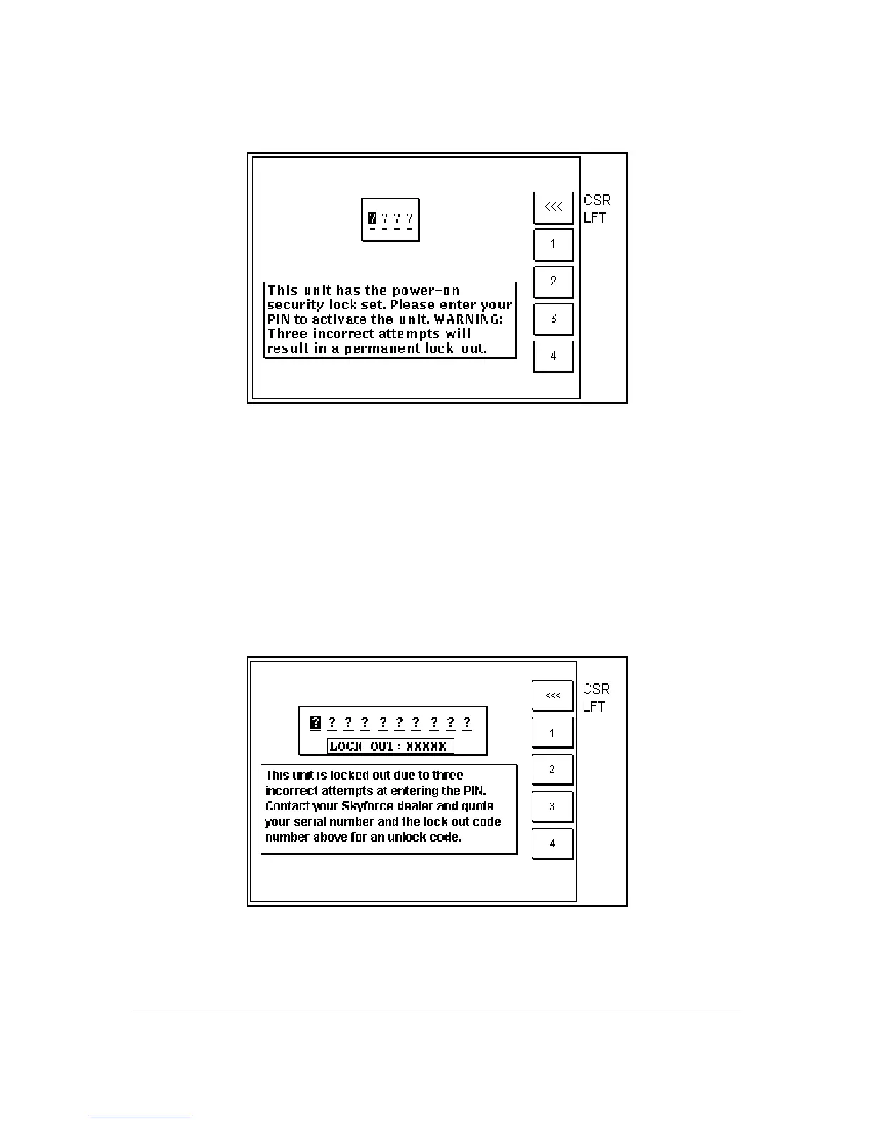 This Screen will only appear after three incorrect PIN's have been entered on Screen 54 (or if when