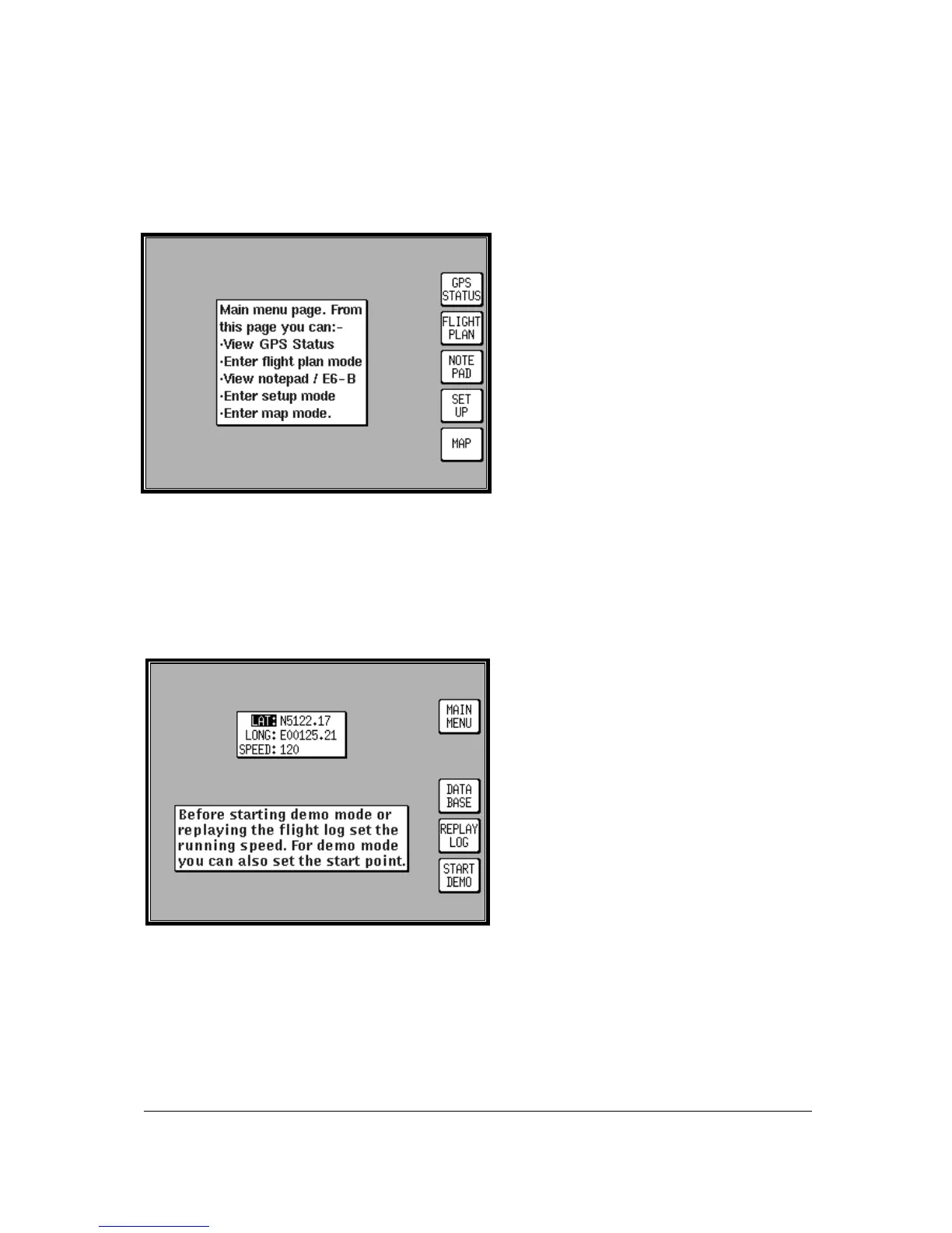 and E6-B functions, or turns off DEMO