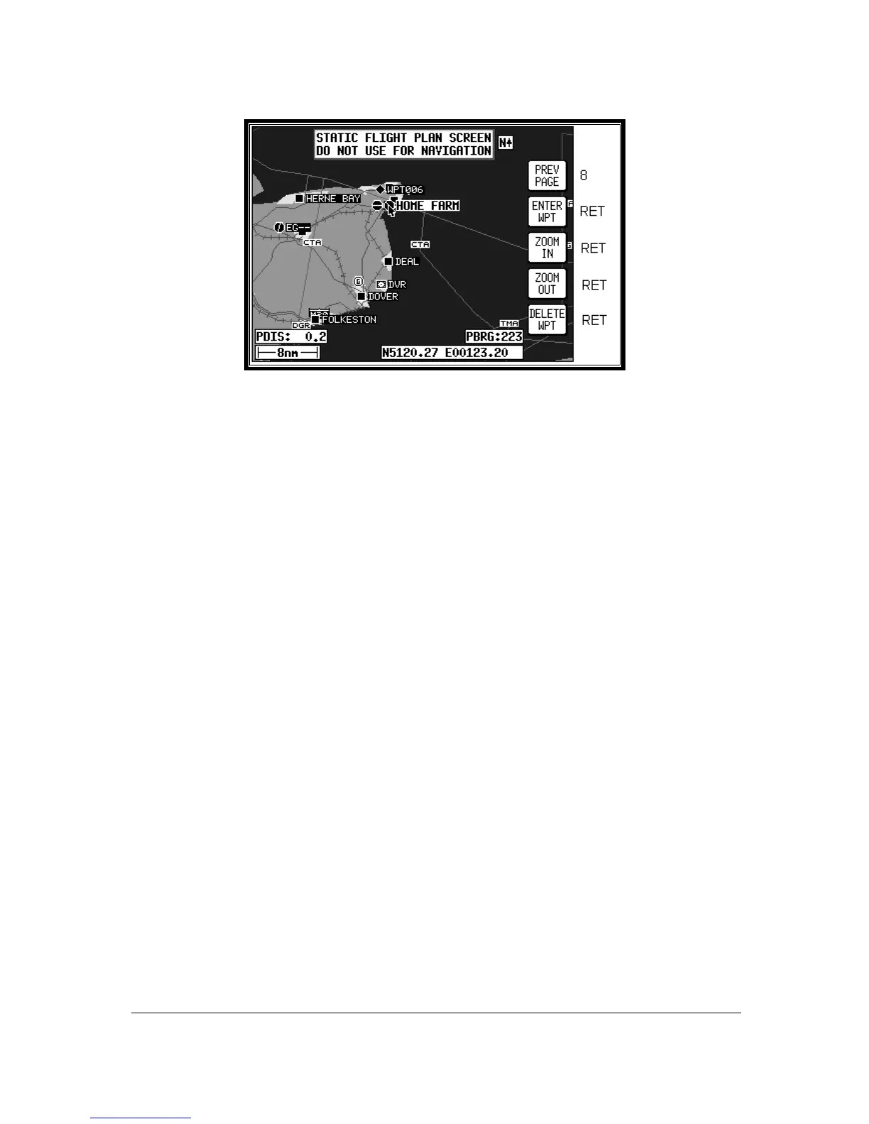 without deleting the user waypoint. Key 1, PREV PAGE returns to the screen entered from, saving any
