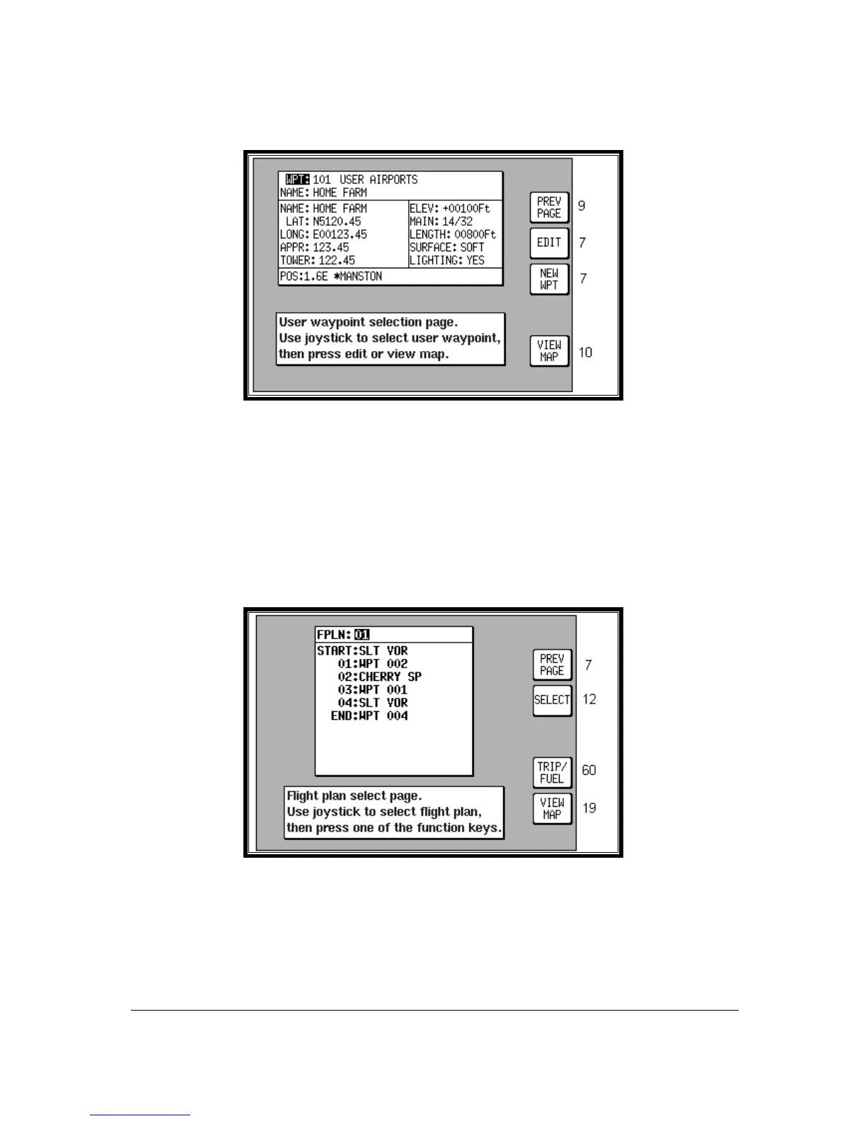 as was described earlier for selecting user waypoint numbers. Once you have selected the flight plan