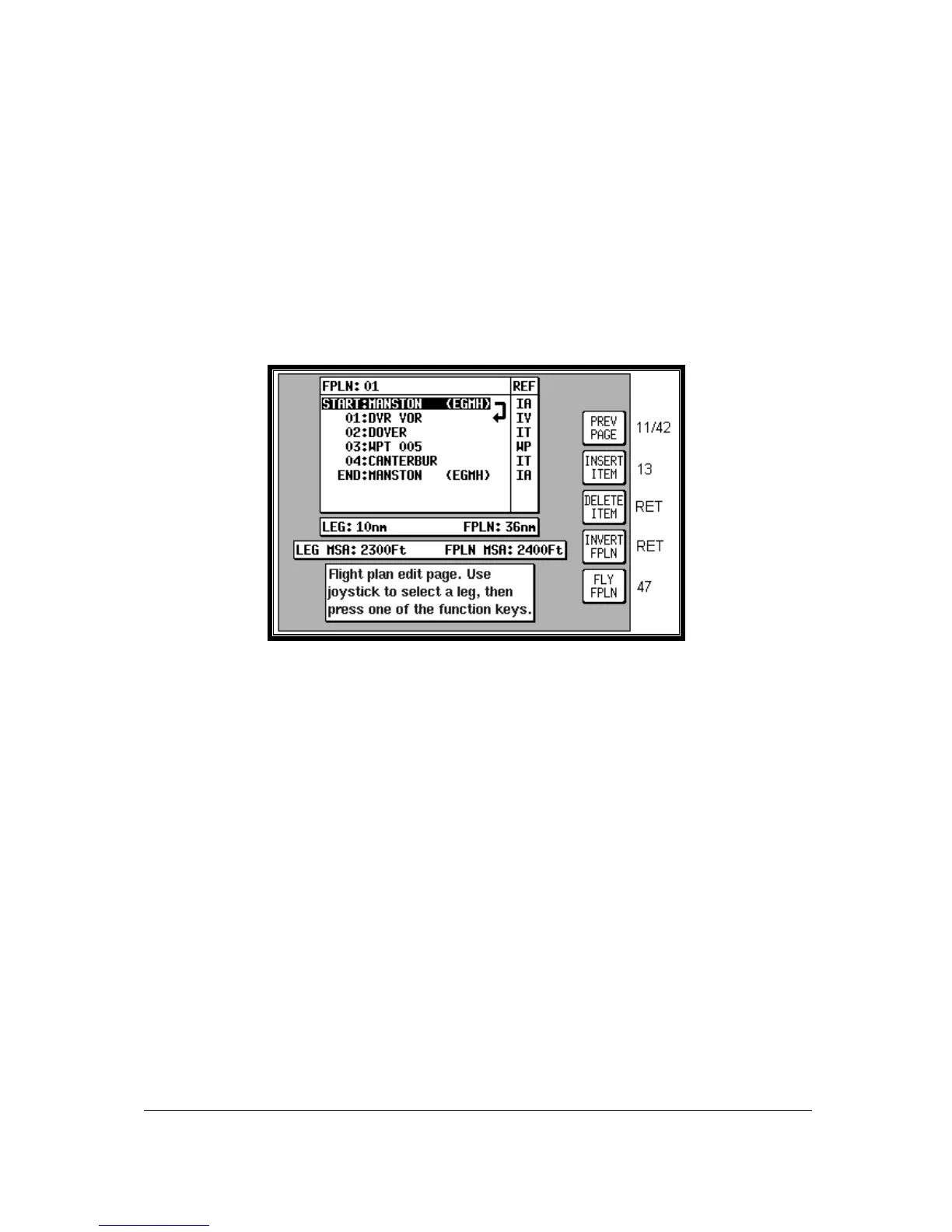 This Screen can be accessed either through the Flight Planning Mode Cover Screen (by pressing