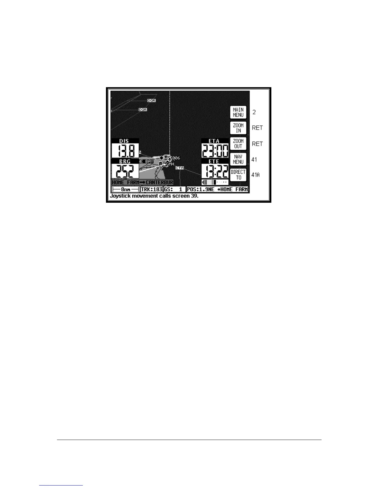 This Screen presents the numeric navigation information in large text laid over the map display in such a