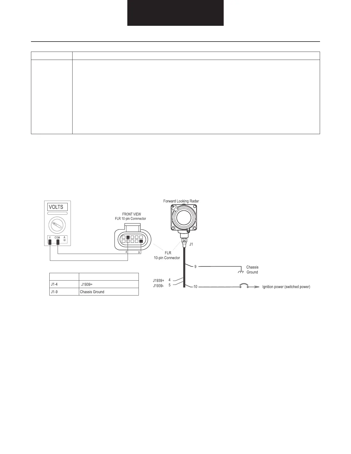 2. Measure for J1939 data voltage on pins 4 and 9 of the FLR harness connector.