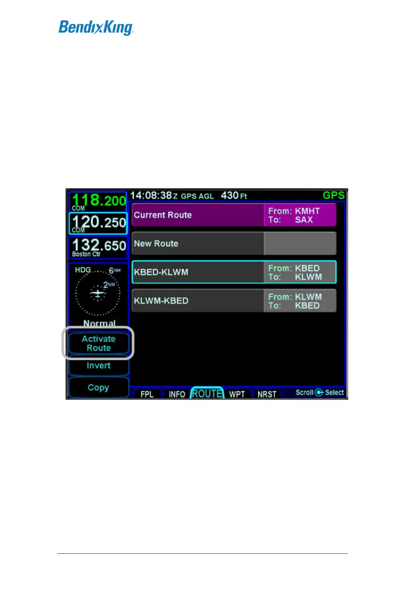 to it. To activate a stored route, from the stored routes list,