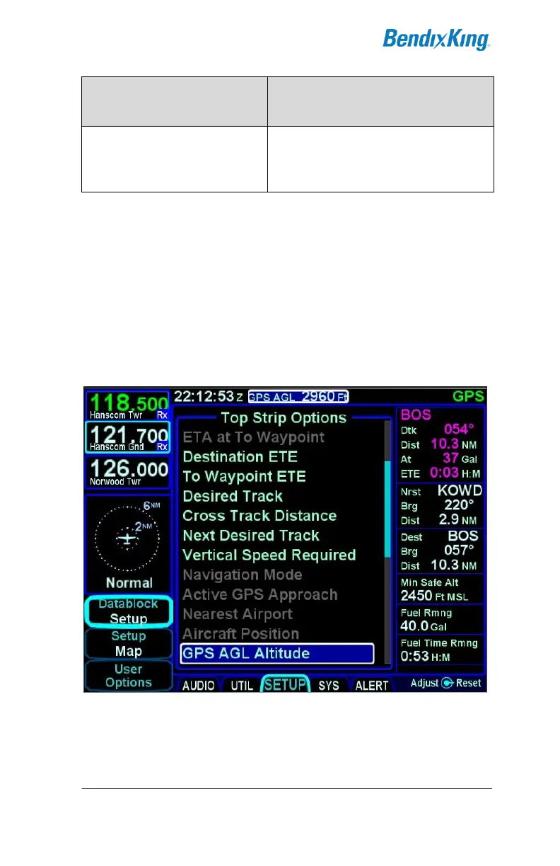 “Datablock” LSK on the SETUP tab of the AUX page and
