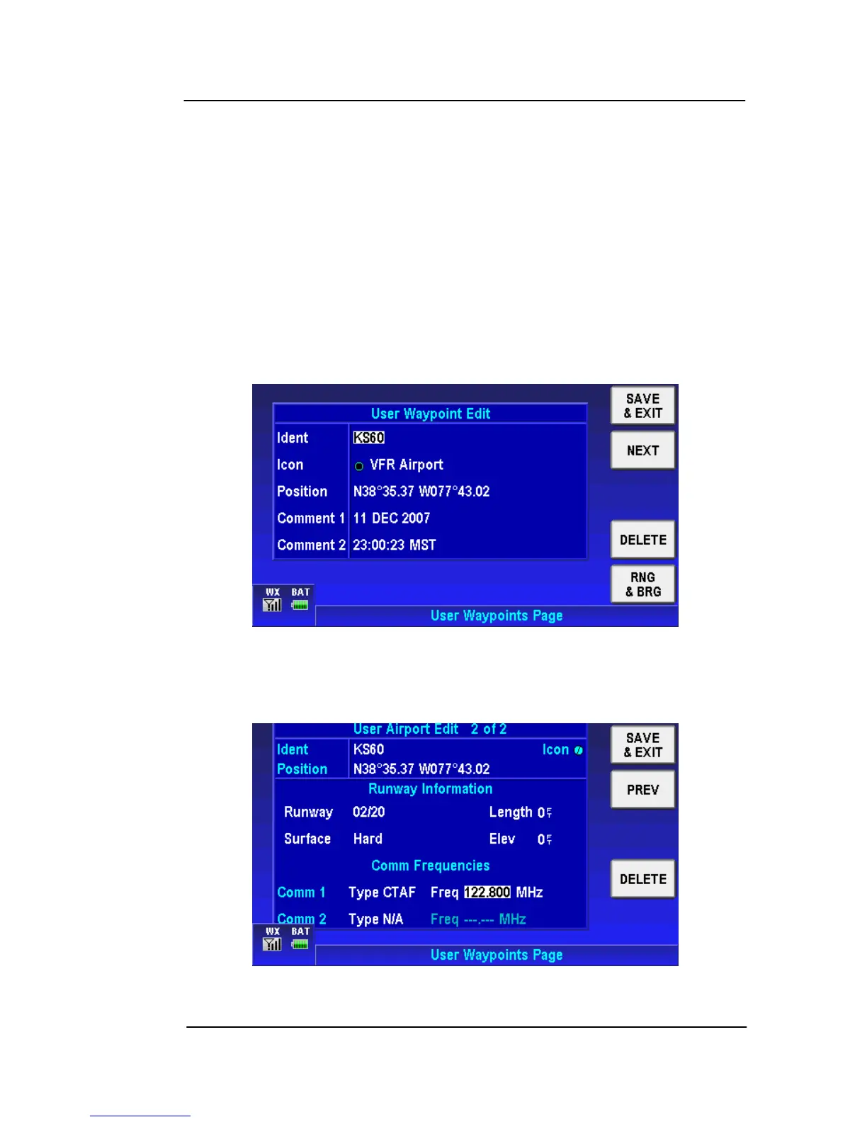Tap on the NEXT soft key to show the User Airport Edit page 2 as