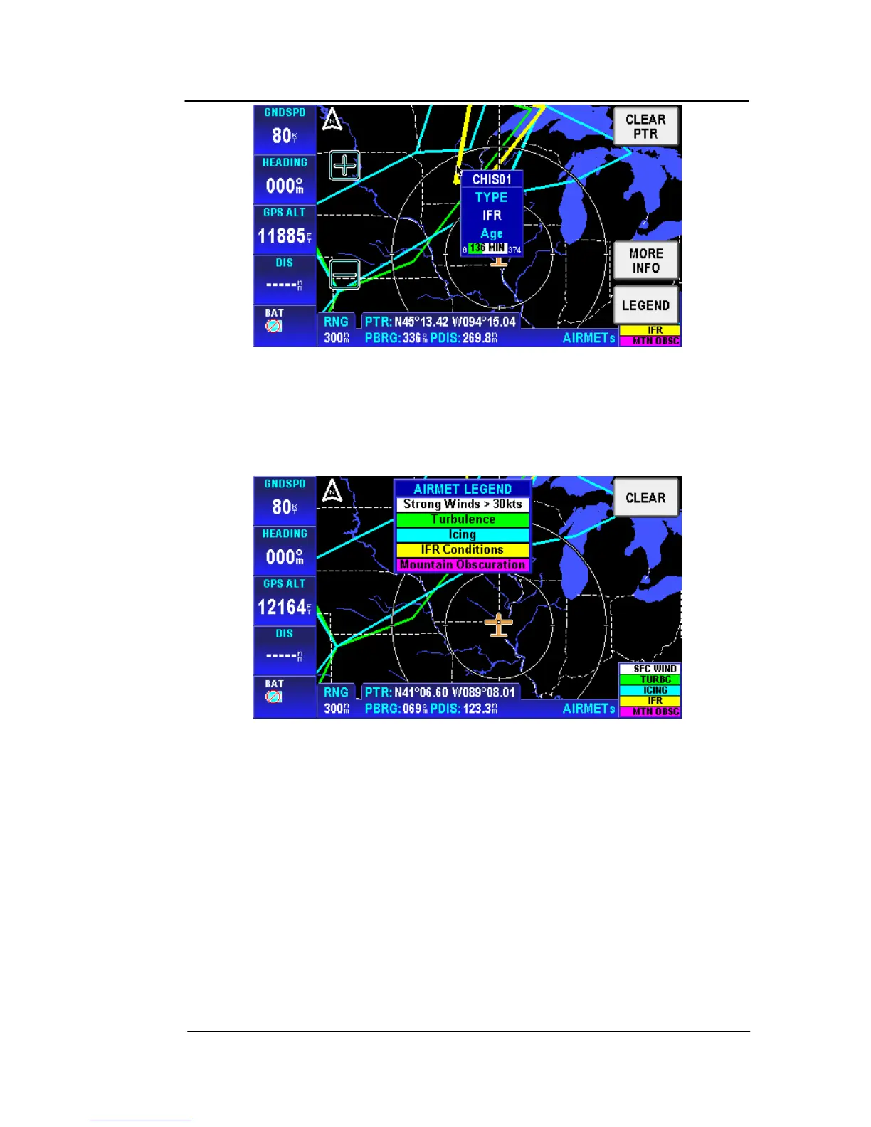 Tap on the LEGEND soft key to display the AIRMET Legend