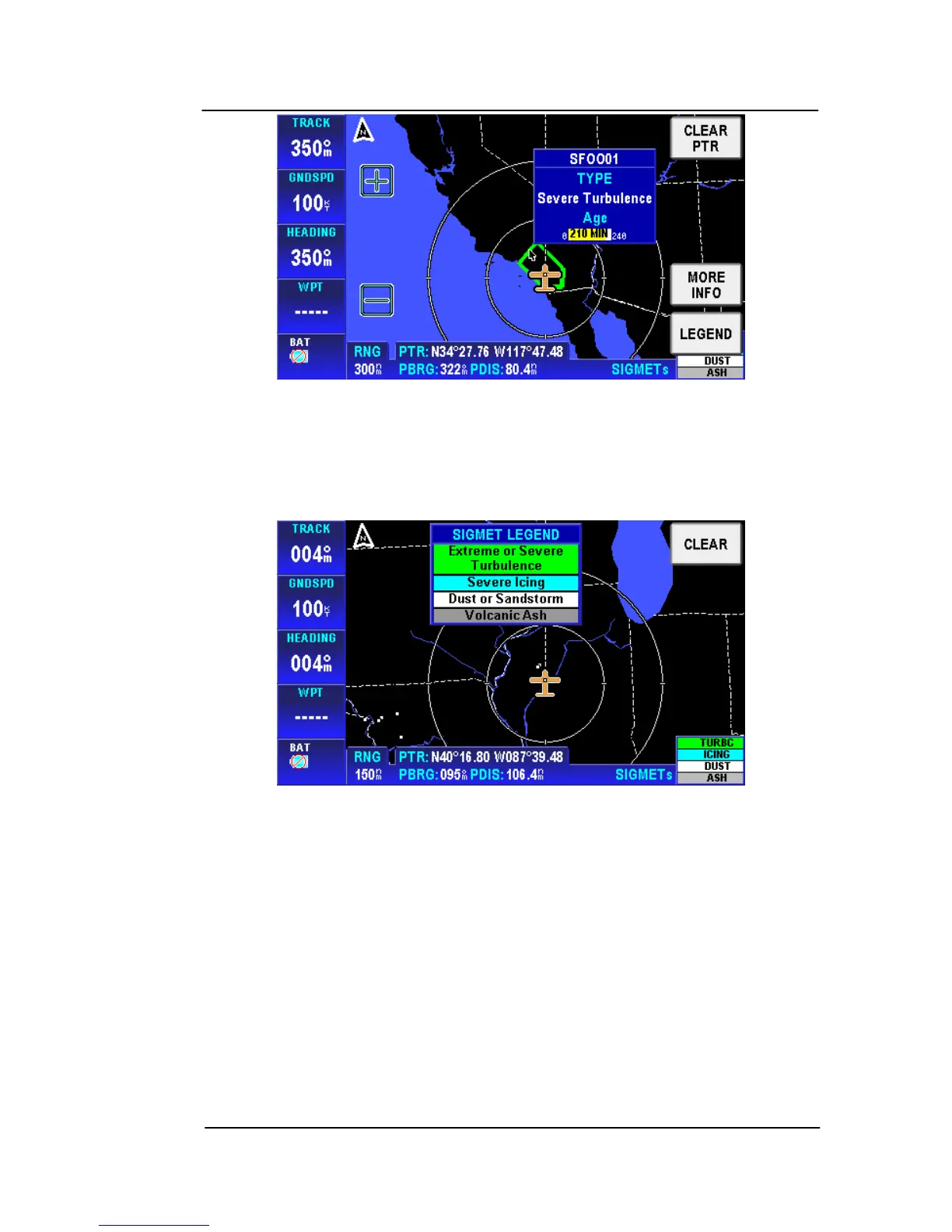 Tap on the LEGEND soft key to display the SIGMET Legend