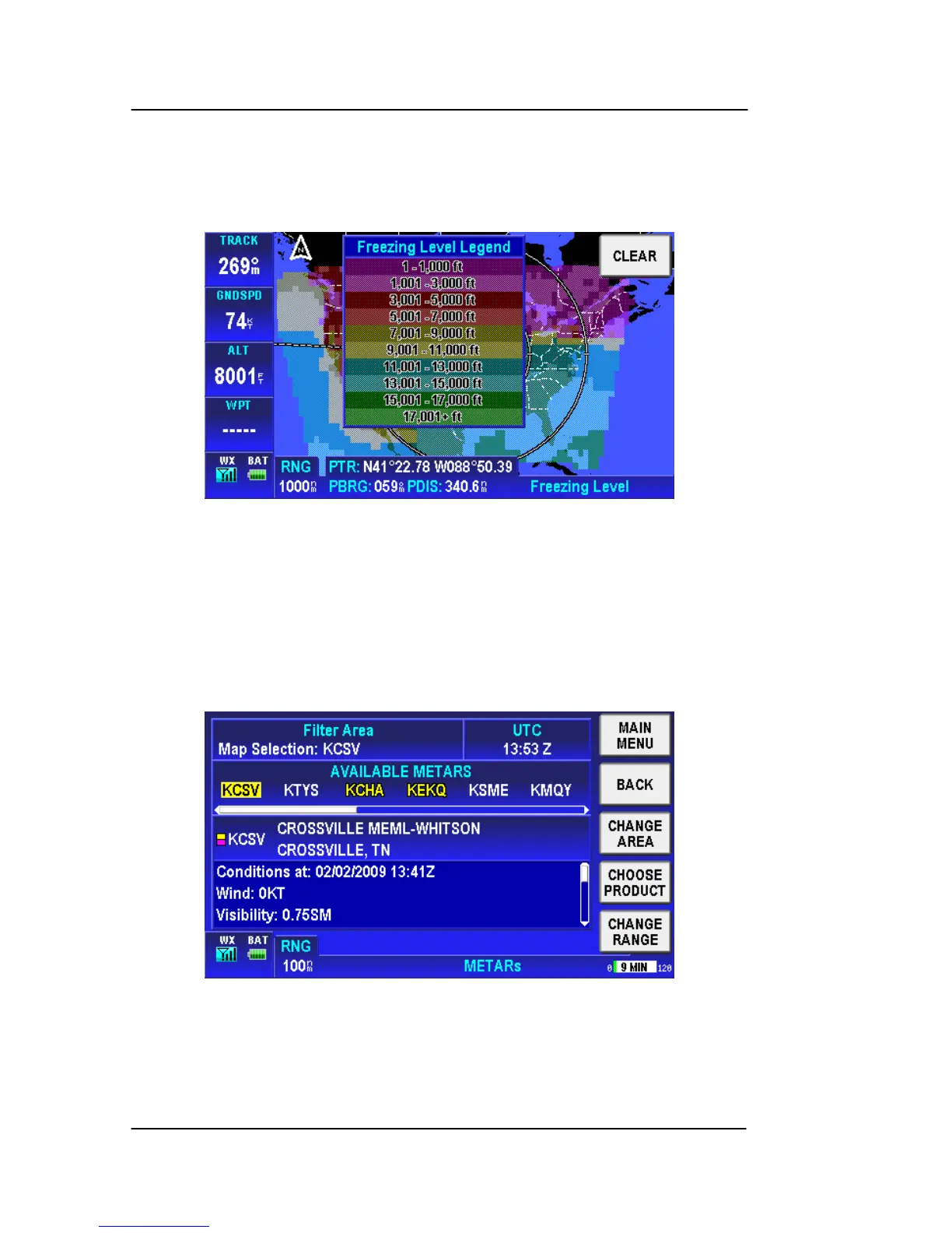 Tap the CLEAR soft key to hide the “Freezing Level Legend” popup