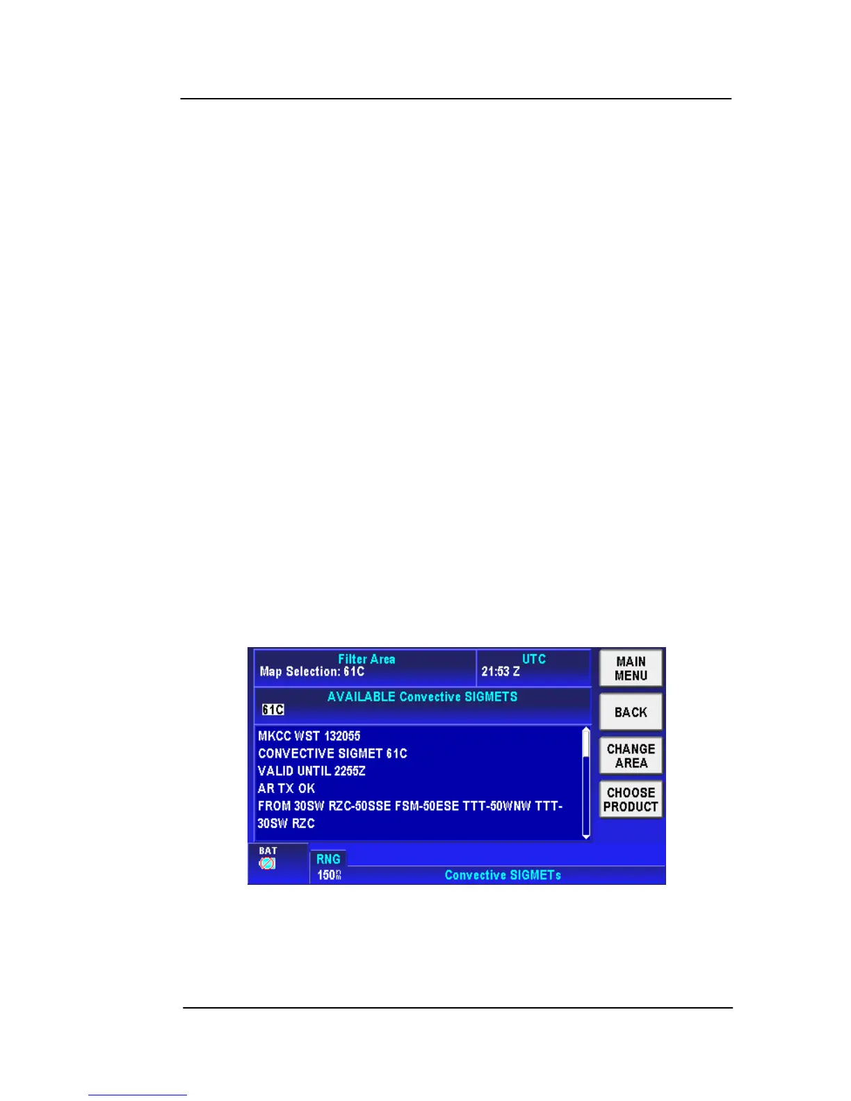 and select Text Conv-SIGMETs from the SELECT WX PRODUCT