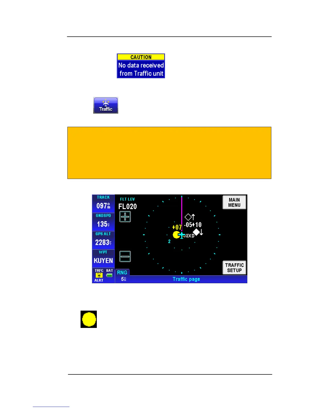show as a solid yellow circle. Traffic