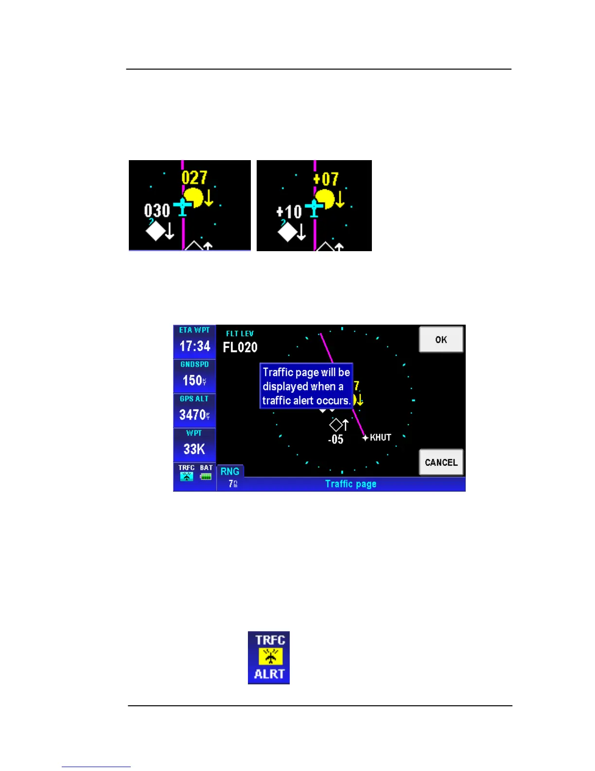 “ALRT” flashes on and off to draw attention to the Traffic Alert.
