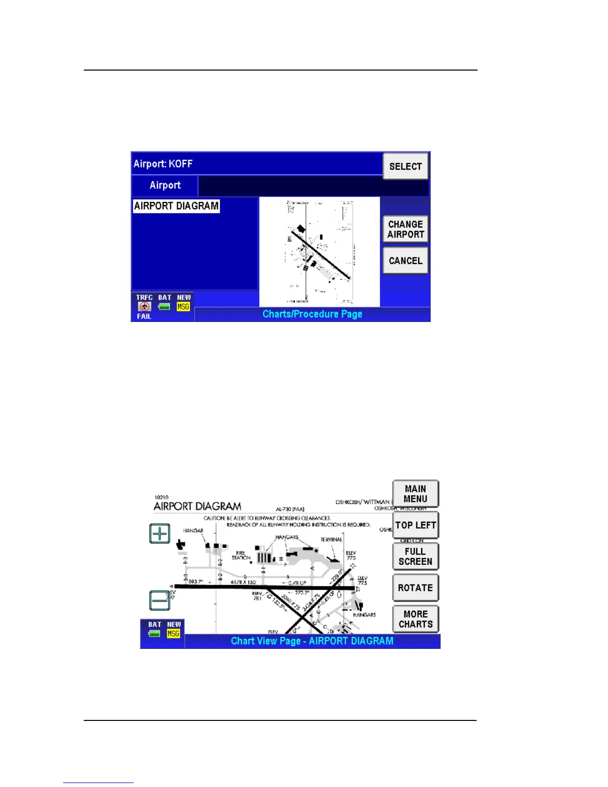 • Tap the CHANGE AIRPORT soft key to display a virtual