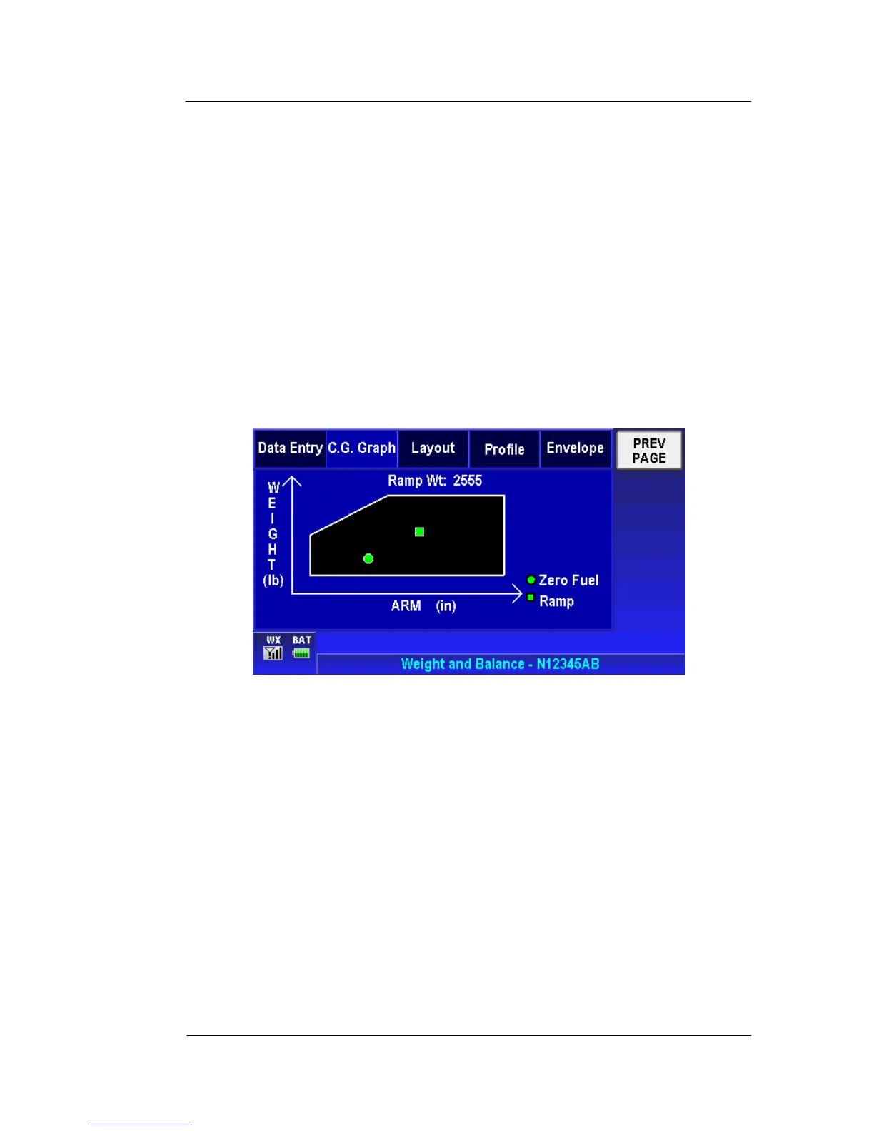 C.G. GRAPH - The C.G. Graph displays both the Ramp (take-off)