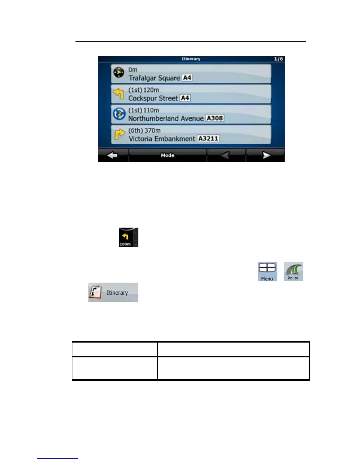 Table 3-6: Itenerary Screen